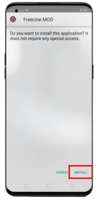 Passo 4: Uma nova tela aparecerá solicitando permissão para instalar o Freecine. Clique na opção “INSTALAR” e o processo de instalação será iniciado.