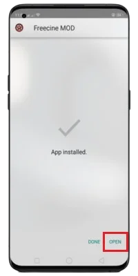 Passo 5: Em seguida, será confirmado que o aplicativo foi instalado pela opção “Aplicativo Instalado” com uma marca de seleção no centro da tela.